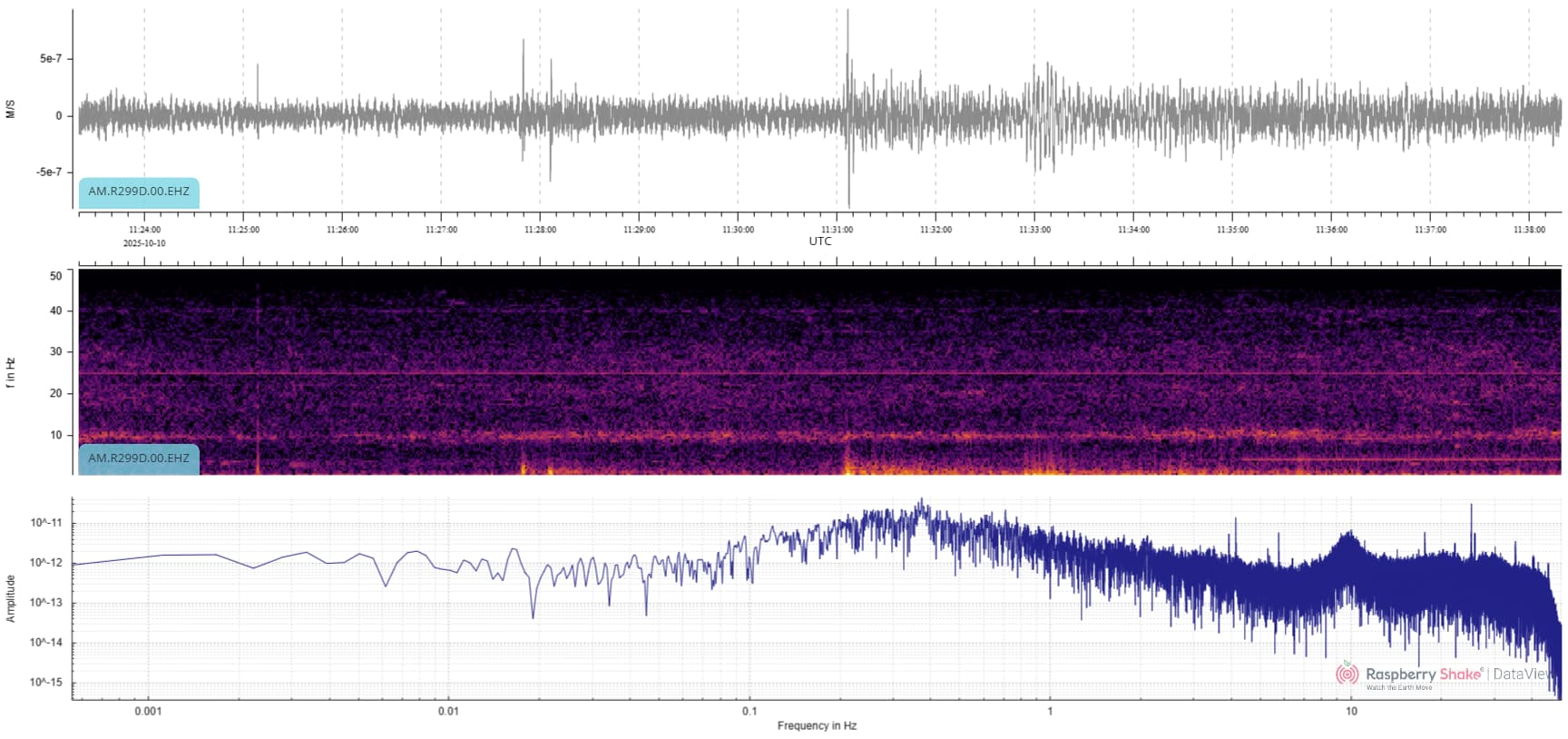 and it also got an M5.6 in the Kurils (first two spikes) and an M6.7 aftershock (main arrival + surface waves) always in the Philippines