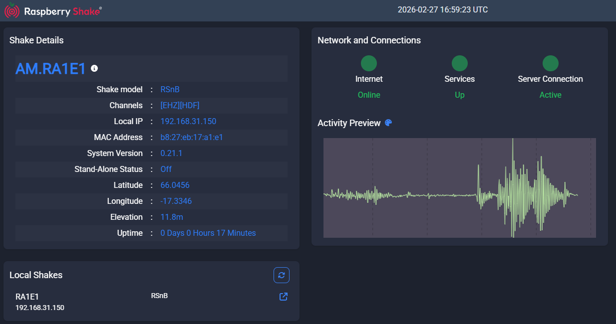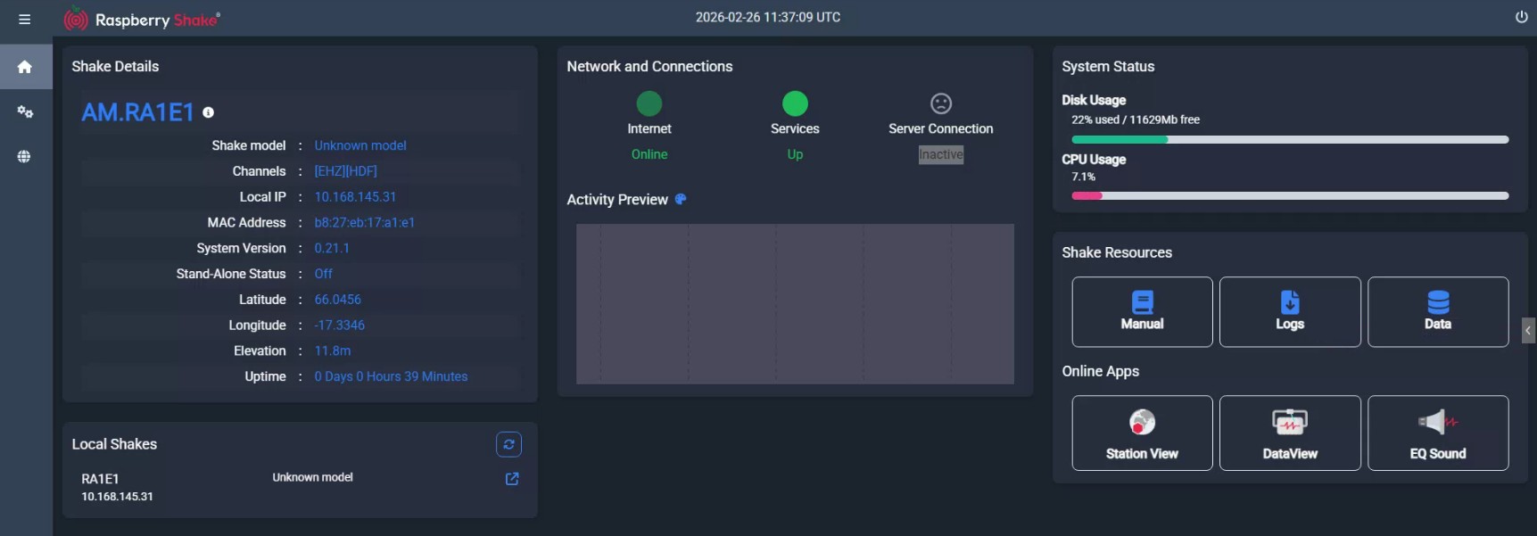 However, in the Raspberry Shake web interface the “Server Connection” status remains disconnected, as shown in the screenshot (attached).