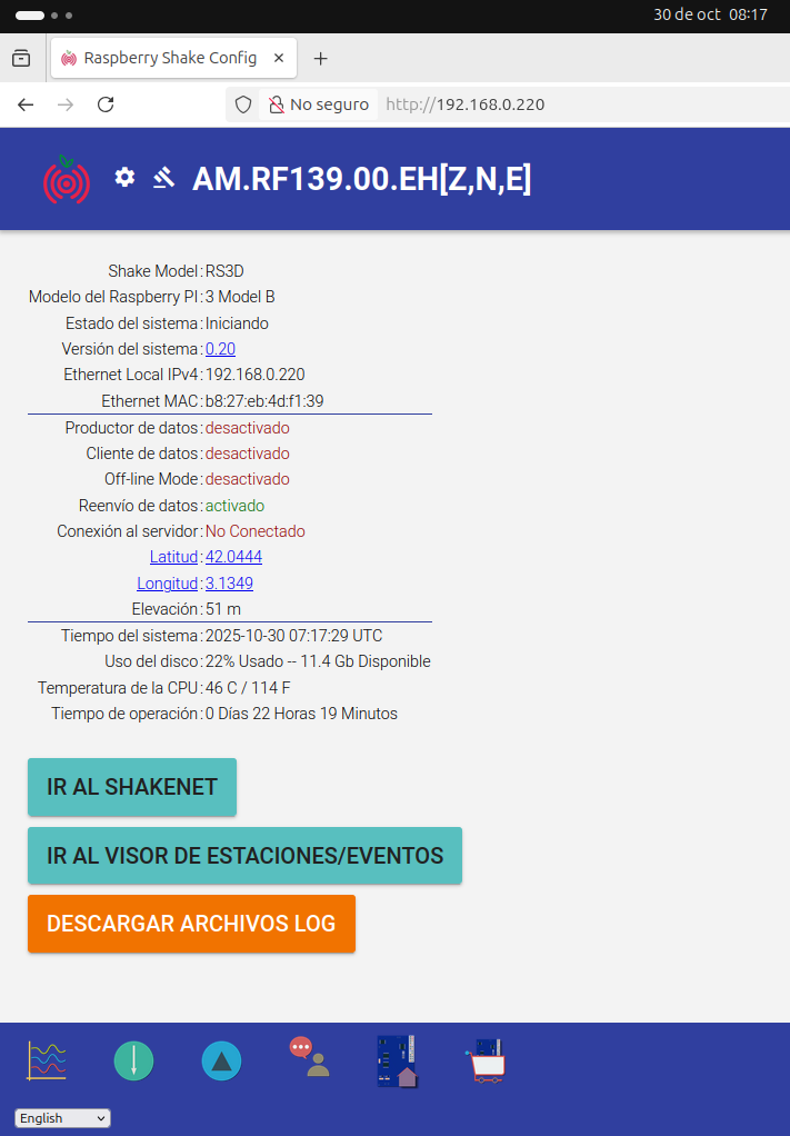 We have recently sent another RS 3D to a High School. They had several problems to see it in their restricted network, but after all they succeed opening the firewal after fixing the IP. Now they can suscesfully access to rs.local and raspberrshakedata server ports 55555 and 55556, but data producer, data client and server connection are still off ¿?