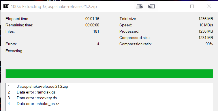 I am downloading from https://gitlab.com/api/v4/projects/30784073/packages/generic/shake-os/21.2/raspishake-release.21.2.zip or from raspberryShake-public / Raspshake Sd Img · GitLab, but when I unzip onto the SD card using 7Zip I get these errors: